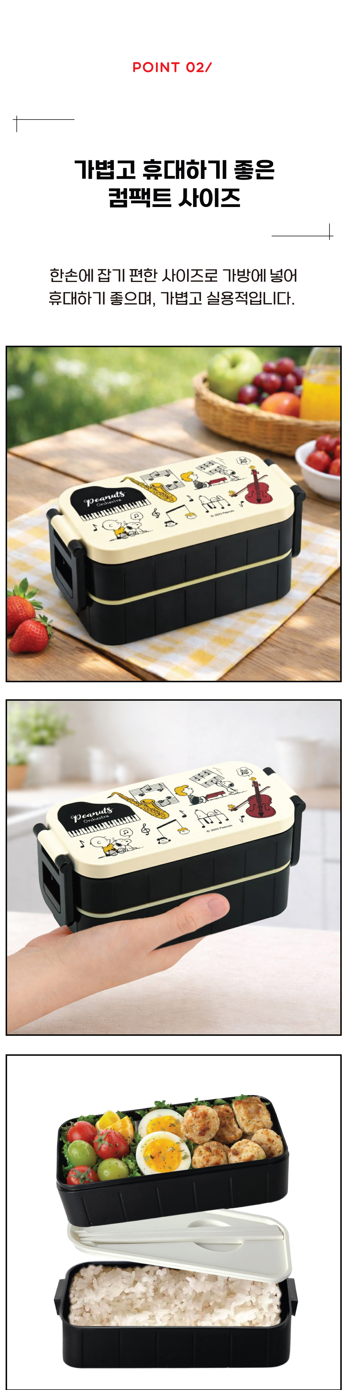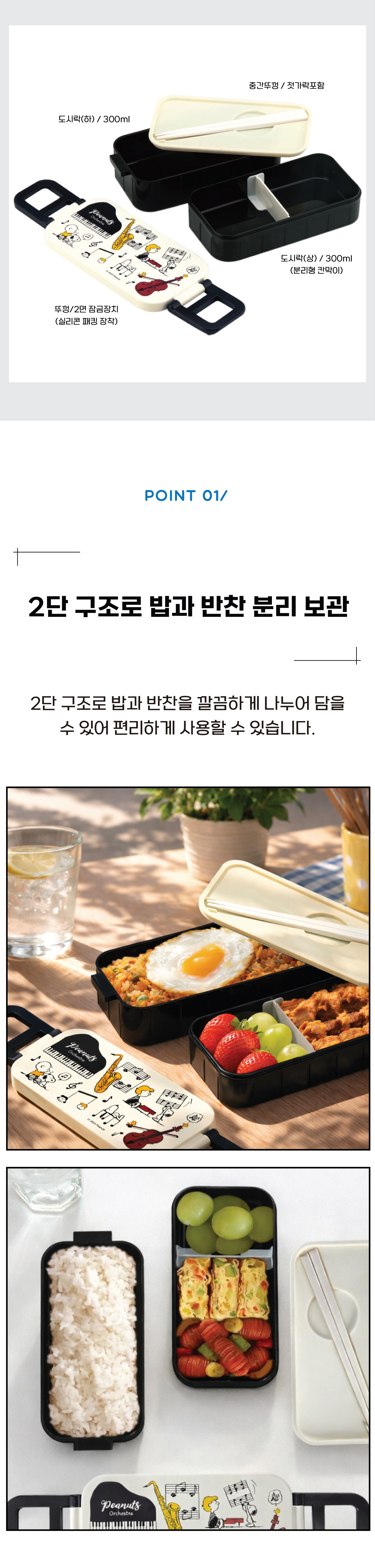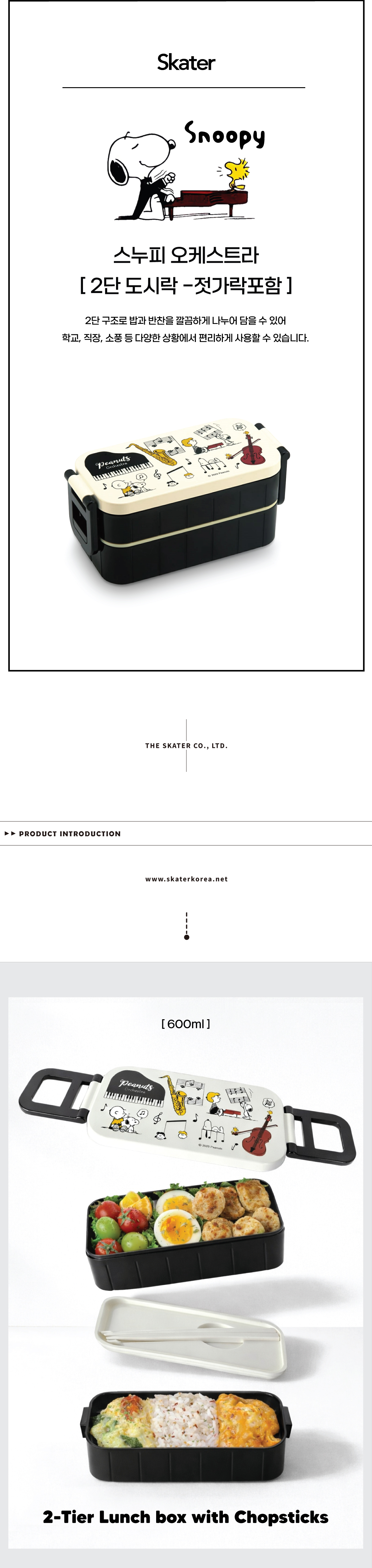 스누피 오케스트라 2단 도시락(젓가락포함)