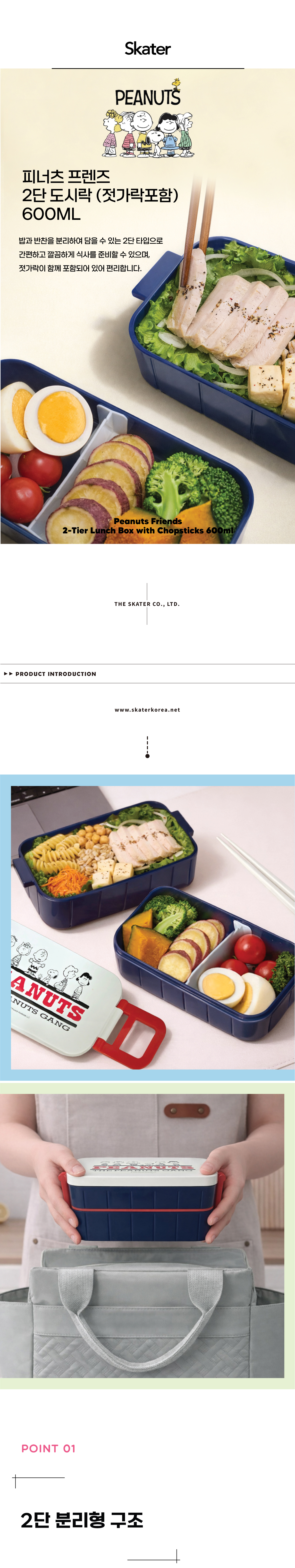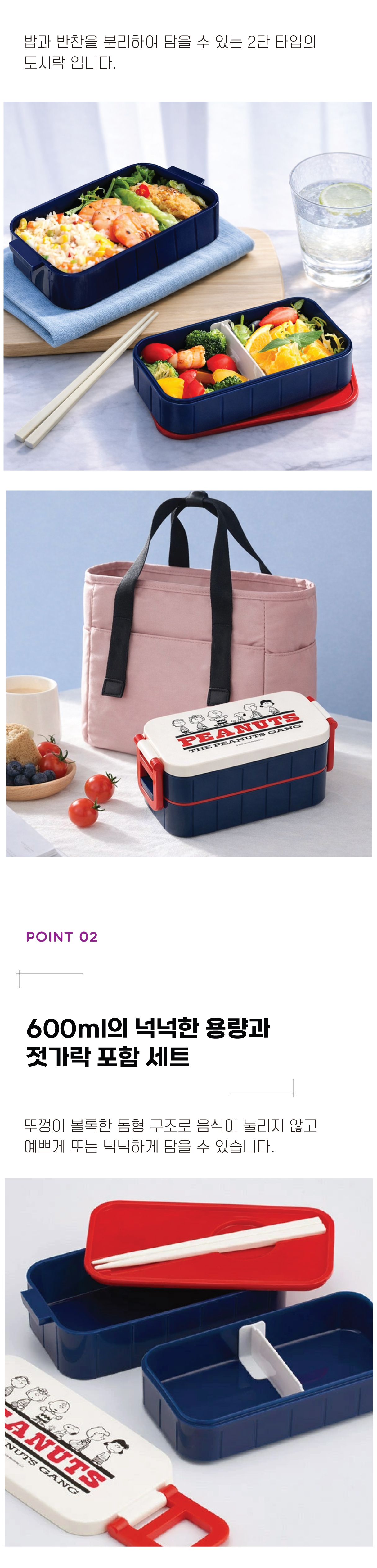 피너츠 프렌즈 2단 도시락 (젓가락 포함)