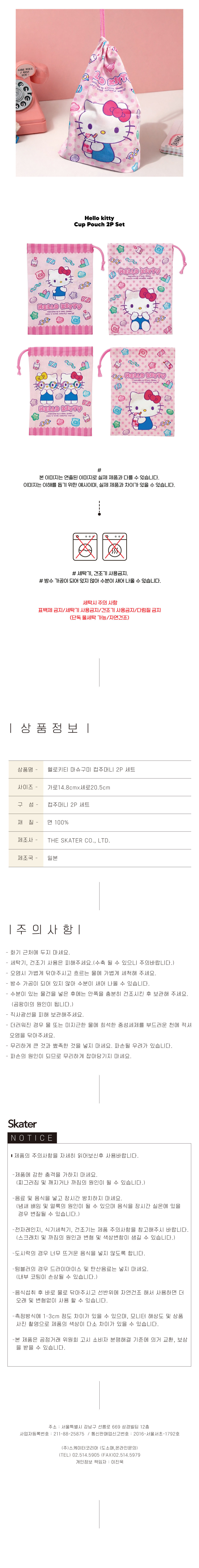 헬로키티 마슈구미 컵주머니 2P세트