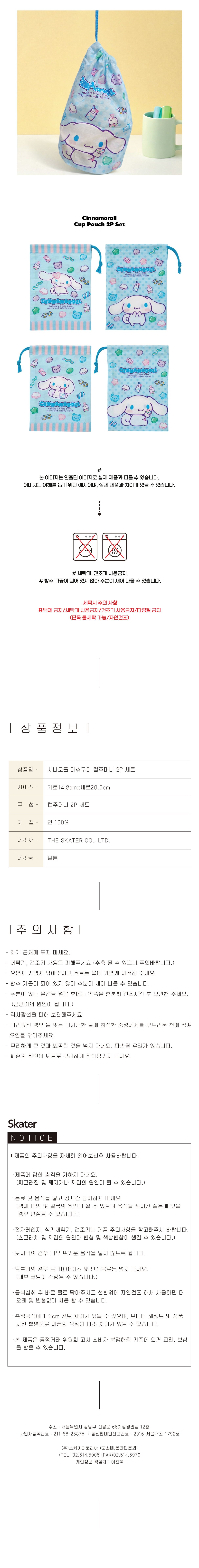 시나모롤 마슈구미 컵주머니 2P세트